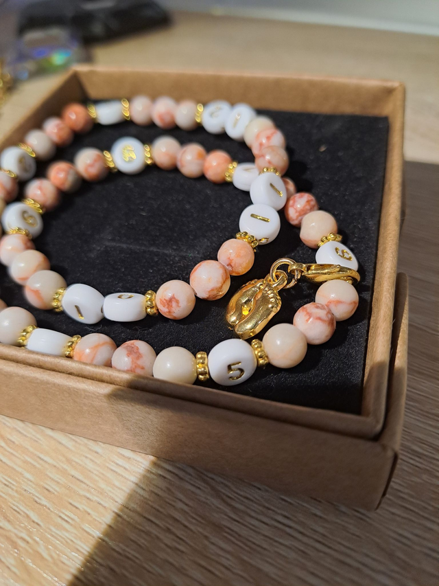Attention, bracelet fait main et artisanal, pour le garder étincelant, il est conseillé de le retirer pour la douche, baignade, sauna, hammam.